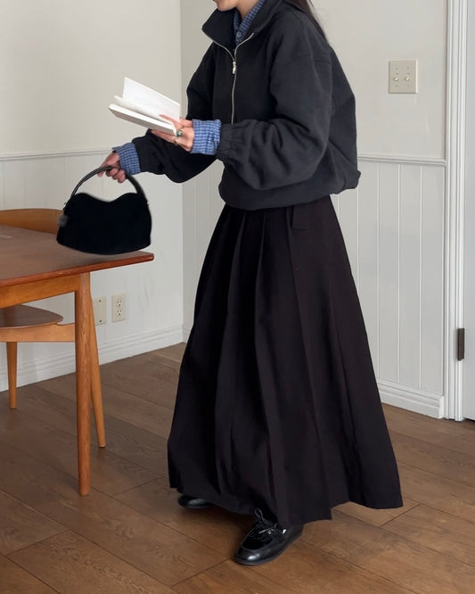 [12/4new] Belted Classic Pleats Skirt Black 12月下旬入荷分