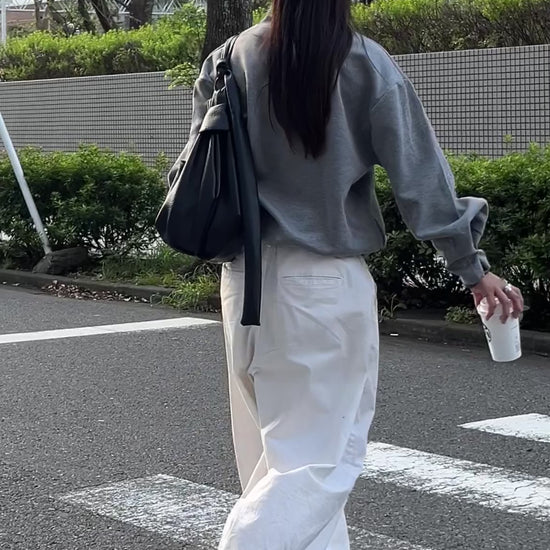 トレンド間違いなしのクロワッサンバッグは、500mlのペットボトルや本も収納可能で、収納力もバッチリ。