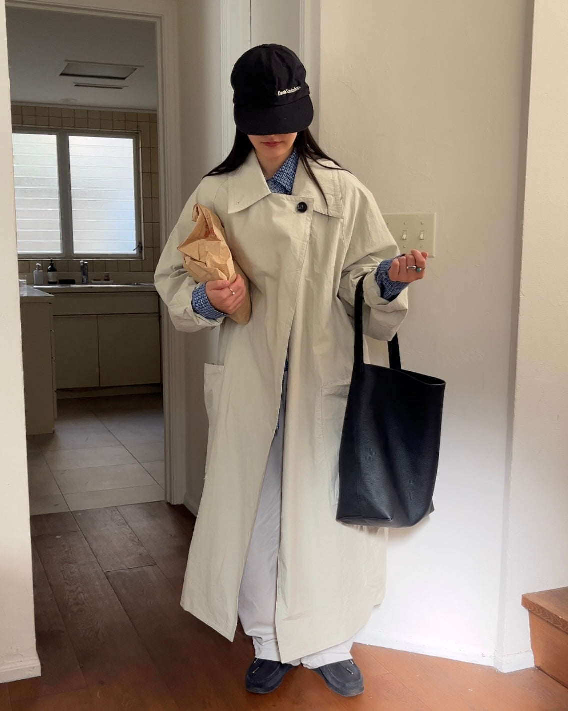 スタイリングへの馴染みやすさも魅力の一つで、オーバーサイズのアウターやスウェットとの相性はもちろん、上品なワンピースやテーラードにも自然と調和します。コーディネートの印象を邪魔せず、それでいて存在感のある佇まいは、大人のワードローブに静かに寄り添うデザイン。長く使うほど手に馴染み、革特有の奥行きある表情が育っていくため、日々の相棒として永く愛用いただける一品です。