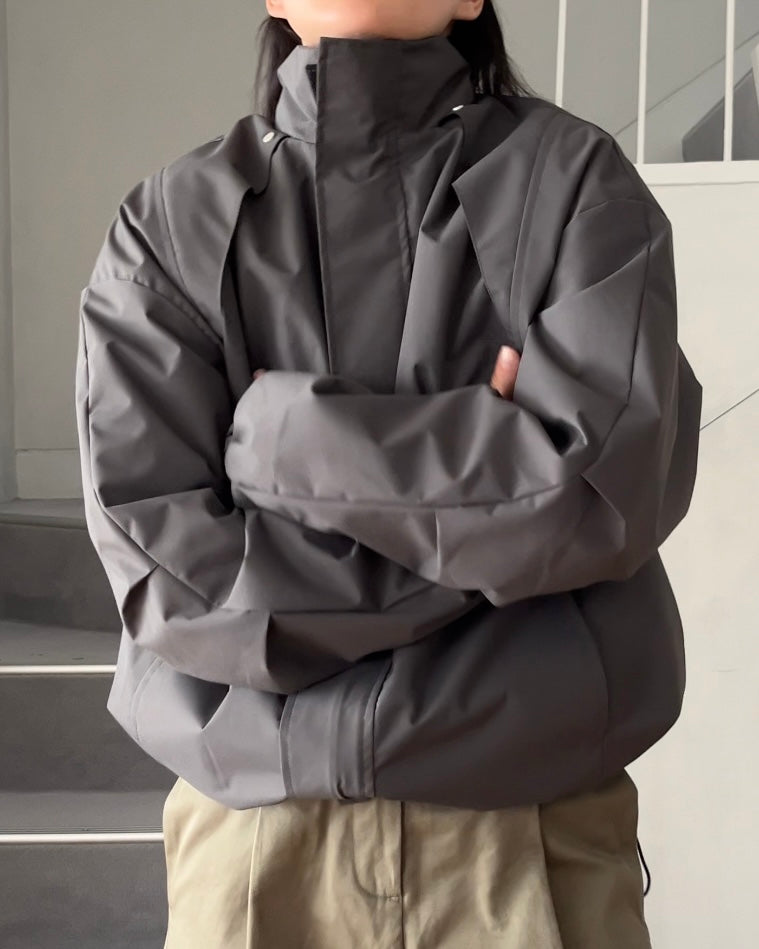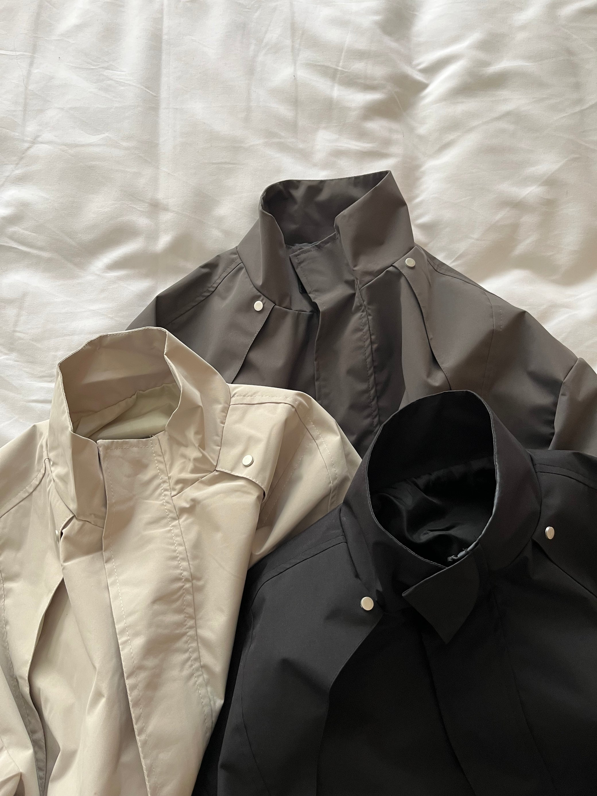 シンプルながらも洗練されたデザインのライトジャケット。薄手ながらもポリエステル100%素材で、軽い雨や風をしっかり防ぎ、季節の変わり目に大活躍。オーバーサイズのシルエットが、抜け感のあるトレンドライクな着こなしを叶えます。