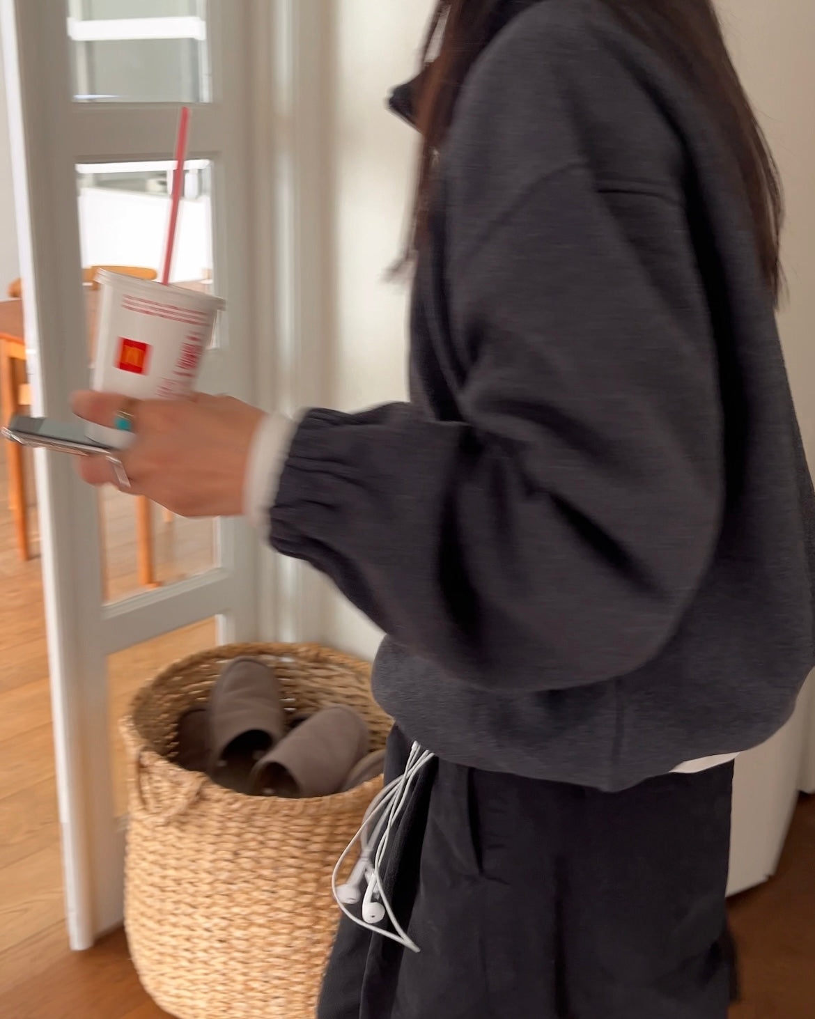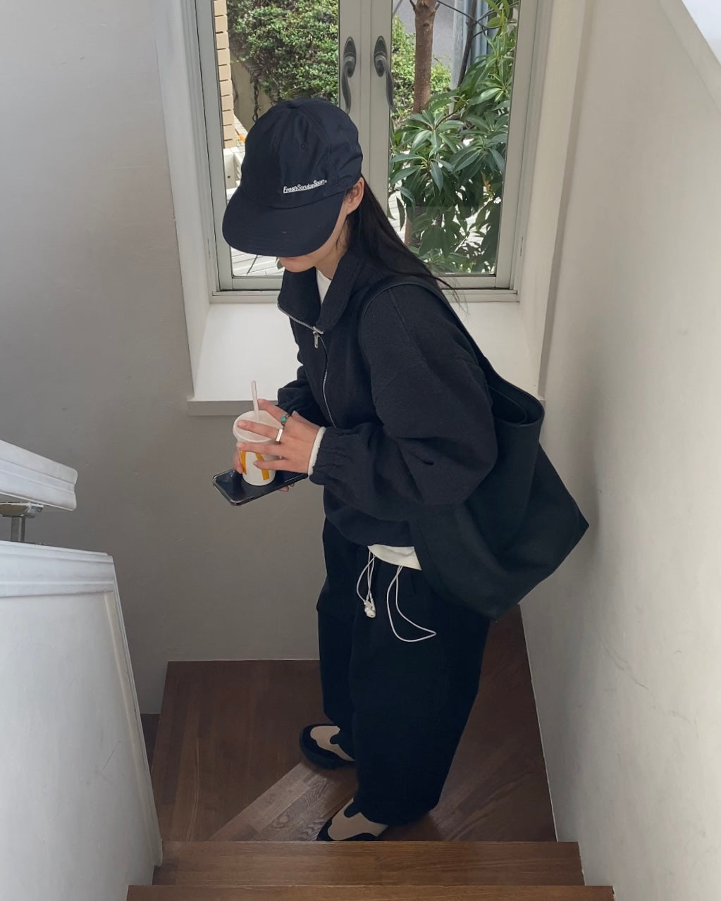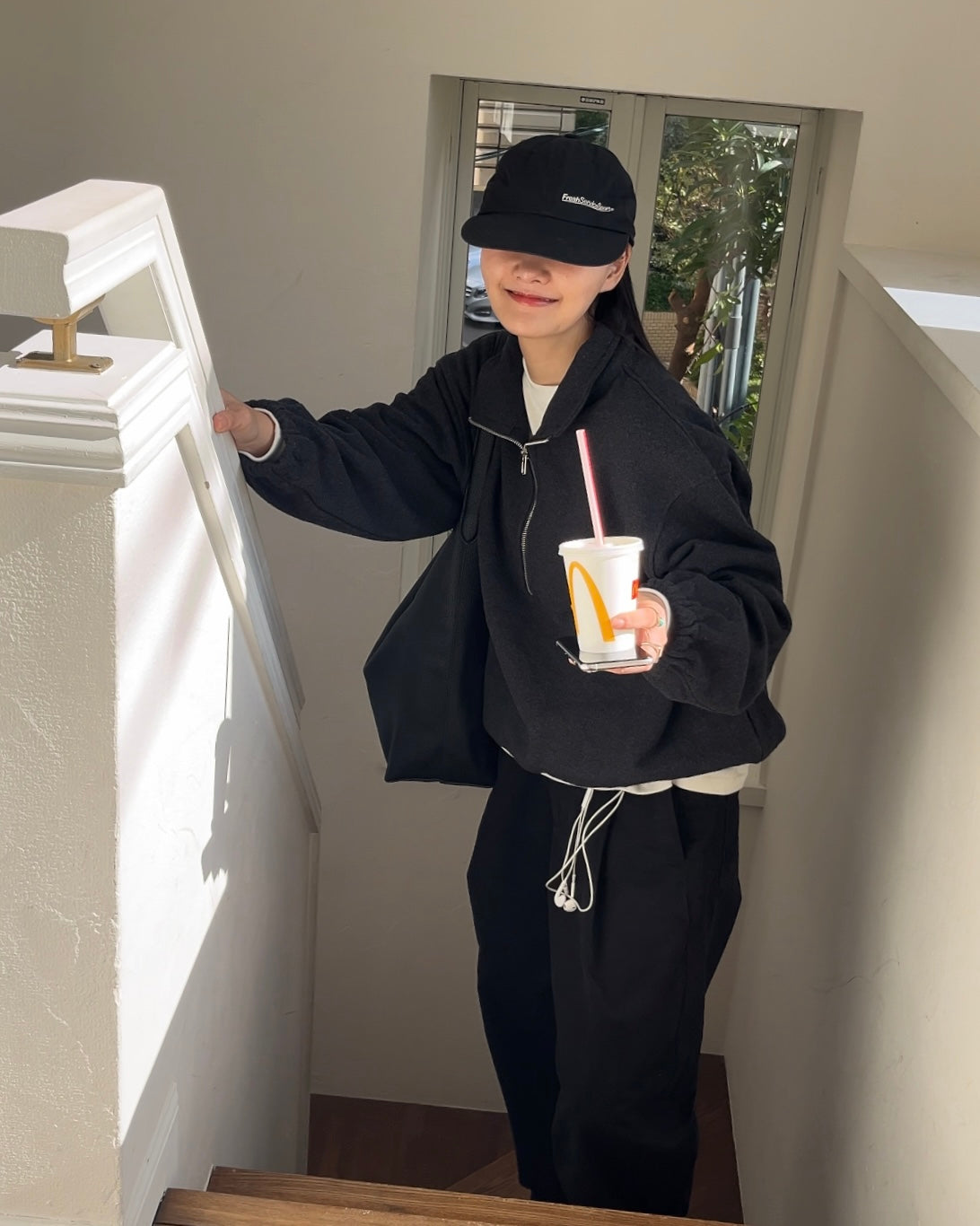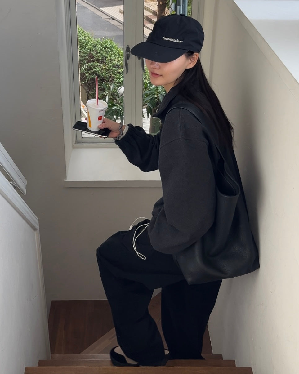 厚手のタオル生地のような、ふんわりと包み込まれる独特のタッチが魅力のハーフジップトップスです。柔らかさと密度を両立した生地は、肌に触れた瞬間から安心感があり、軽いのにしっかり温かい仕上がり。ジップの開閉でシルエットが変化し、首元に抜け感をつくったり、スタンドカラーのように立ち上げて上品に着こなすこともできます。裾はゴム仕様で自然な丸みが生まれ、ボトムスを選ばずバランスのよいシルエットに。リラックスウェアの快適さとデイリーウェアの品の良さを掛け合わせたような、新鮮な空気を纏える一着です。