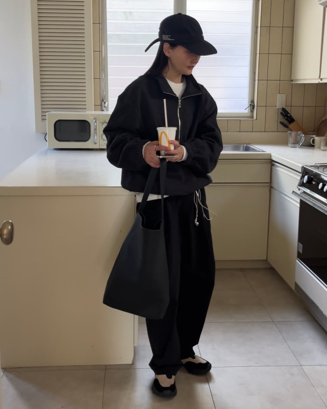 コットンをベースに、ナイロンやウール、再生繊維をミックスした素材は、やわらかさ・保温性・通気性のバランスが良く、長時間着ても蒸れにくいのが特徴。単品使いでも存在感がありながら、アウターの中に入れてもゴワつきにくく、季節の変わり目から冬まで幅広く活躍します。ワイドパンツやスラックスに合わせればモード寄りに、スカートやデニムと合わせれば抜けたカジュアルに。何気ない日を少しだけ心地よく整えてくれる、“毎日手が伸びるトップス”としてワードローブに加えたくなるアイテムです。