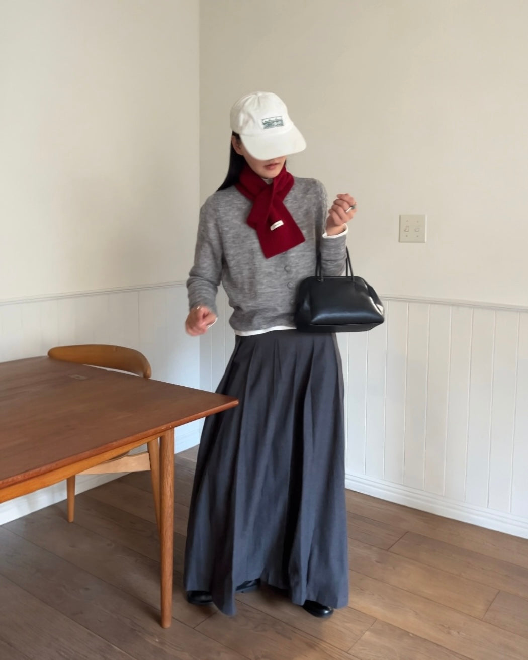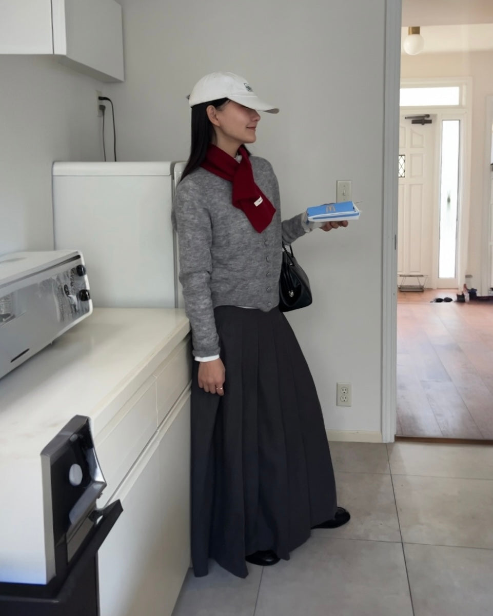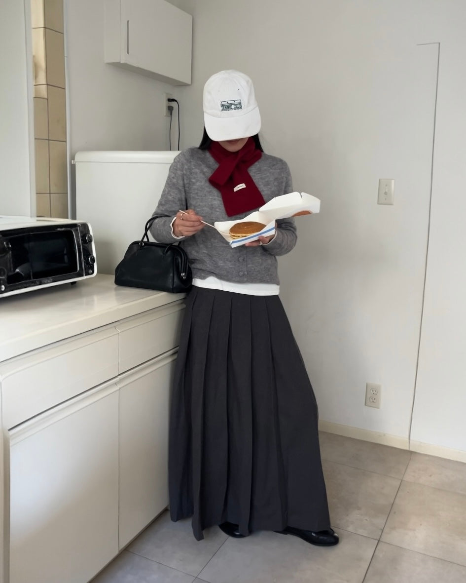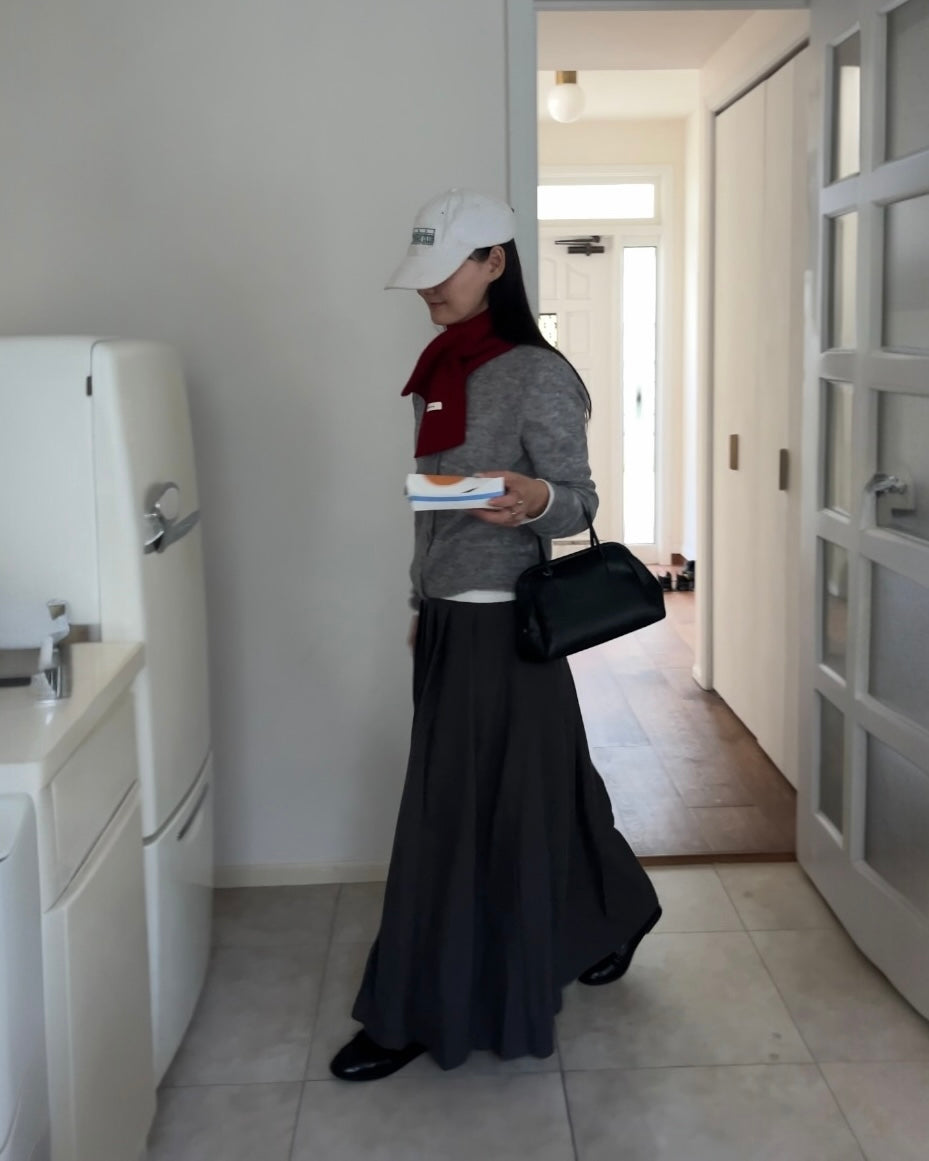 端正なプリーツを贅沢に施したロングスカートは、動きに合わせてしなやかに揺れ、潔くミニマルな佇まいの中に静かな華やぎを宿す一着です。腰まわりに余計なボリュームを出さずに落ちる縦ラインが、体を美しく見せながらも日常に寄り添う心地よさを両立。付属のベルトがウエストをさりげなく引き締め、トップスのシルエットを選ばずに自然とバランスの良いスタイリングへ導きます。ニットやシャツ、スウェットとの相性も良く、季節をまたいで着回せる汎用性の高さも魅力です。