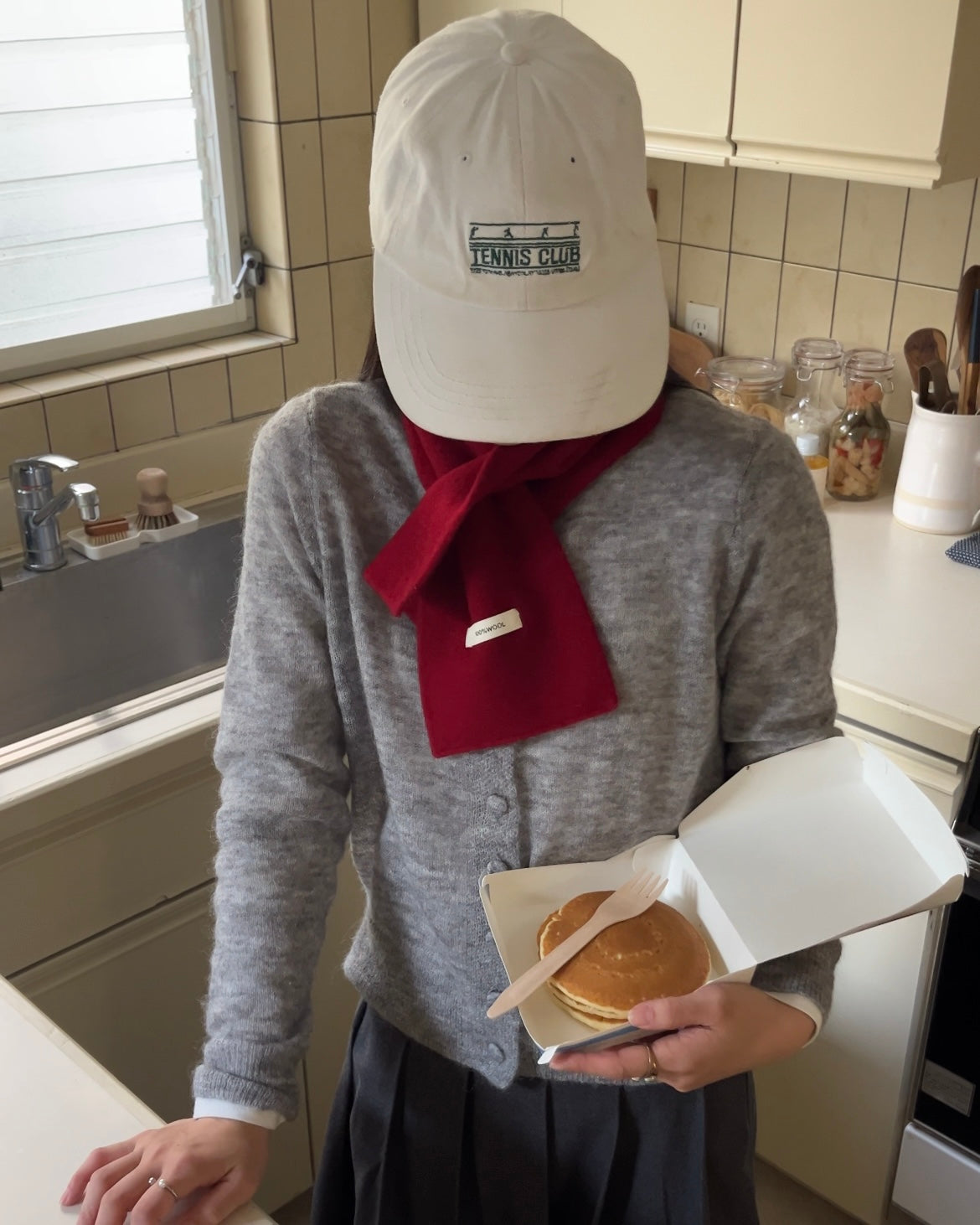 着丈はややコンパクトに整え、ボトムとのバランスが取りやすく、パンツにもスカートにも自然と馴染む万能なプロポーション。肩のラインは過度に落とさず、身体に沿いながらも窮屈さを感じさせない快適なシルエットです。羽織りとしてはもちろん、ボタンを留めてトップス風にも着こなし可能で、コート下のインナーにも収まりが良い万能設計。シンプルだからこそ、素材の表情とニュアンスあるグレーが引き立ち、ワードローブの中心として長く活躍してくれる一着です。