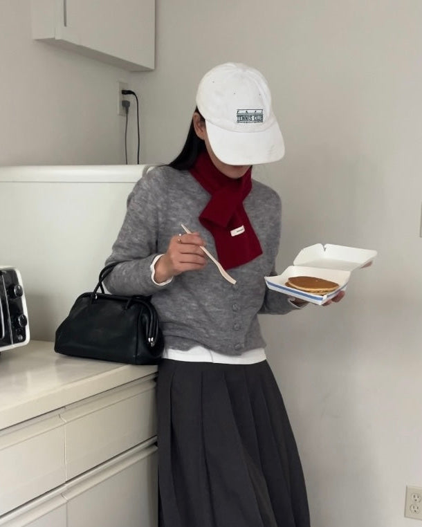 しなやかなウールに軽やかなナイロン、そして柔らかく空気を含むモヘアをバランスよくブレンドし、肌あたりの良さと上品な軽さを同時に叶えたニットカーディガン。小さく並んだくるみボタンがミニマルな印象を深め、必要以上に飾らない佇まいの中に、さりげないフェミニティと清潔感を宿しています。編み地は薄すぎず厚すぎず、素肌にも重ね着にも寄り添う柔らかさ。日常の温度差に寄り添いながら、季節を越えて長く愛せる1枚を目指しました。