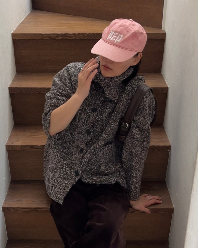 表情豊かなメランジ糸で編み立てた、温もりを纏うショート丈ニットカーディガン。アクリル80%・ウール20%の柔らかなブレンドは、軽やかさとしっとりとした保温性を両立し、冬の空気にふわりと寄り添うような快適な着心地を叶えます。立体的に編まれたテクスチャーが陰影をつくり、シンプルな装いにも奥行きを生むのが特徴。ほんのり丸みのあるフォルムが身体を包み込み、優しいニュアンスを与えてくれます。
