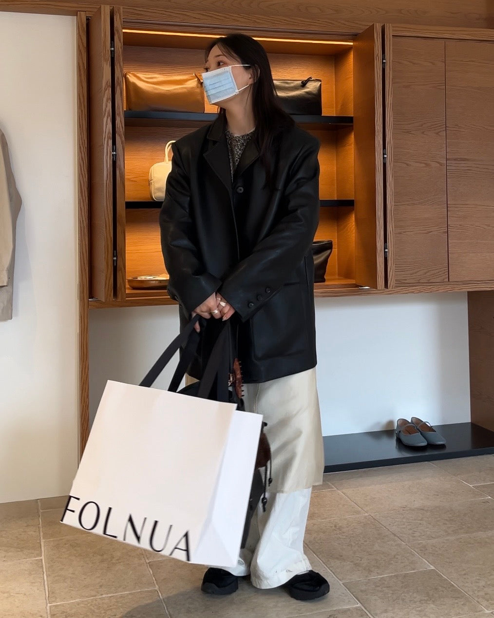 フロントはミニマルなボタン仕様で、閉じた時は端正に、開けると程よい抜け感を演出。肩まわりは自然な丸みを持たせ、インナーを選ばず重ねやすい設計です。ポリウレタン素材ならではの扱いやすさも魅力で、気負わず羽織れる実用性の高さが日常に寄り添います。パンツにもスカートにも合わせやすく、モードからカジュアルまで幅広いスタイルに対応。季節の変わり目に頼れる、ワードローブの軸となるアウターです。