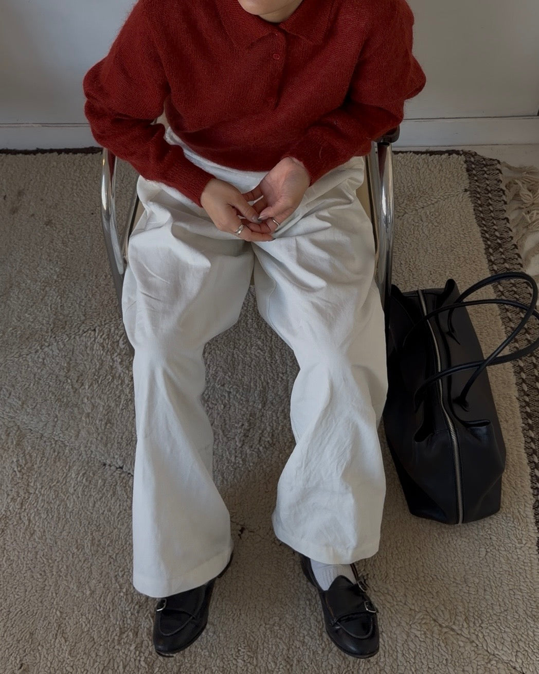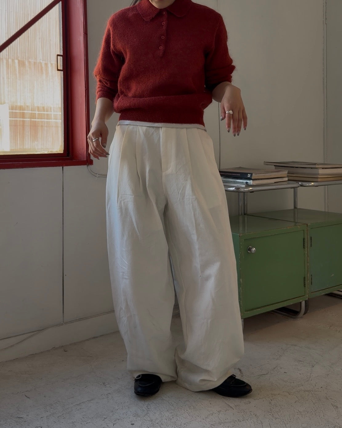 テンセルとコットンをバランスよく混紡した生地を使用した、軽やかでしなやかな質感が魅力のパンツ。テンセル特有の落ち感と、コットンの自然なハリが合わさることで、動くたびに静かに揺れる美しいシルエットを描きます。腰まわりはすっきりと設計し、裾に向かってゆとりを持たせたラインが、身体のラインを拾いすぎず、余白のある佇まいを演出します。主張しすぎない素材感が、日常の装いに自然と溶け込む一本です。