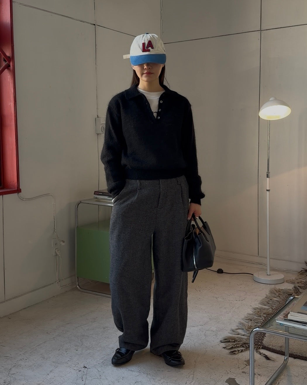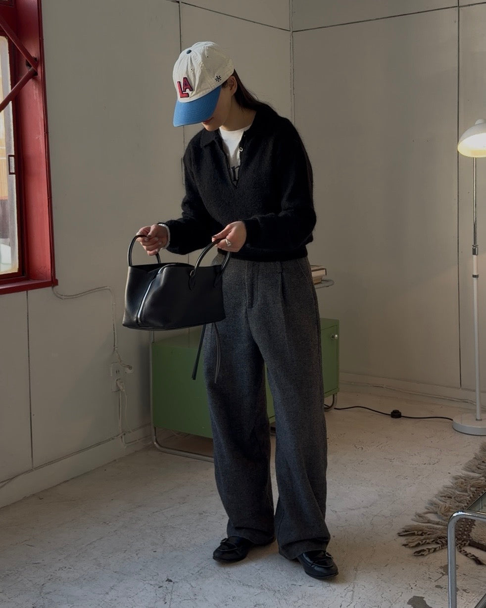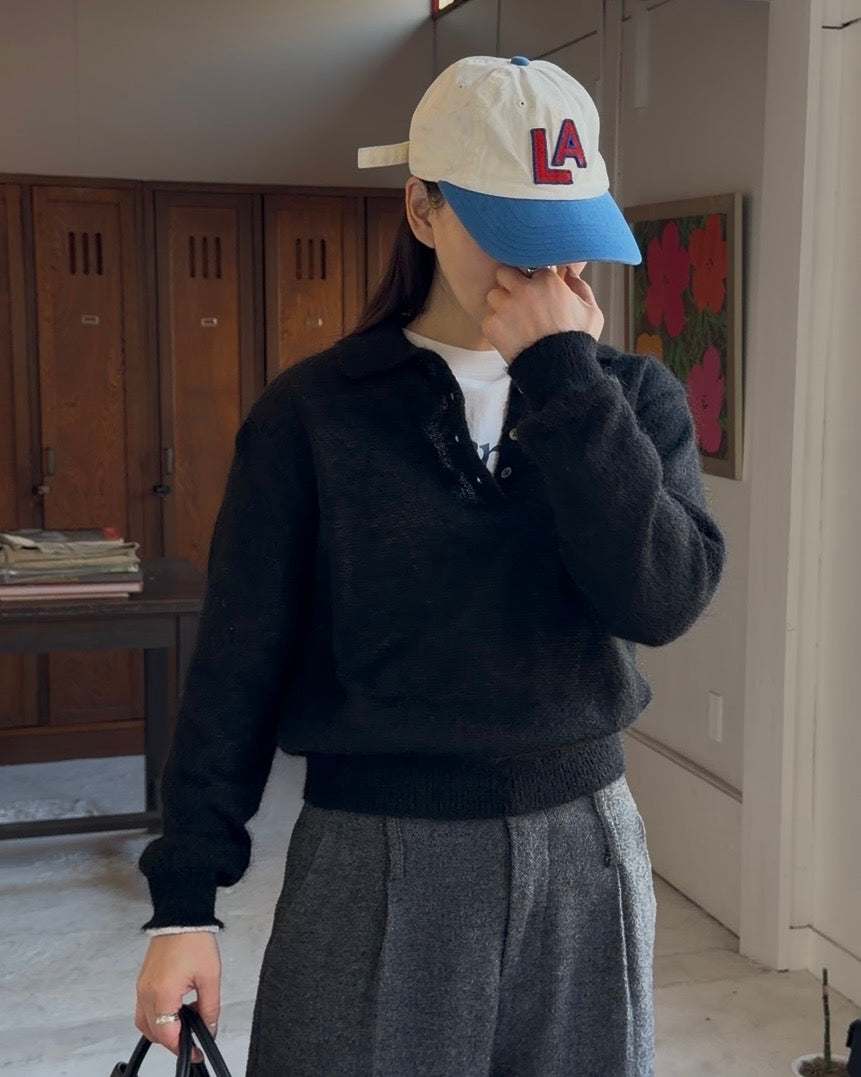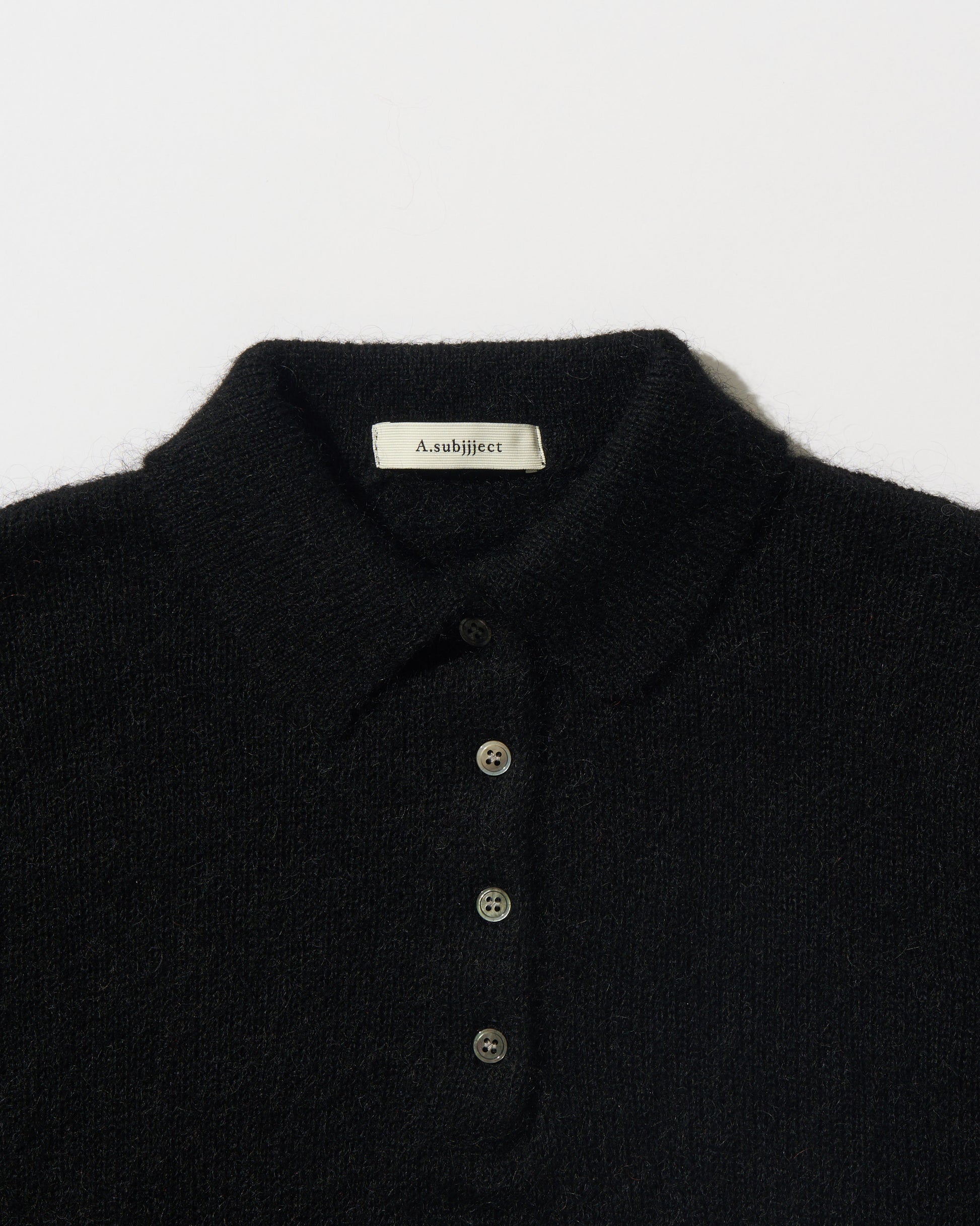 Nylon Wool Mohair Soft Polo Knit BLACK