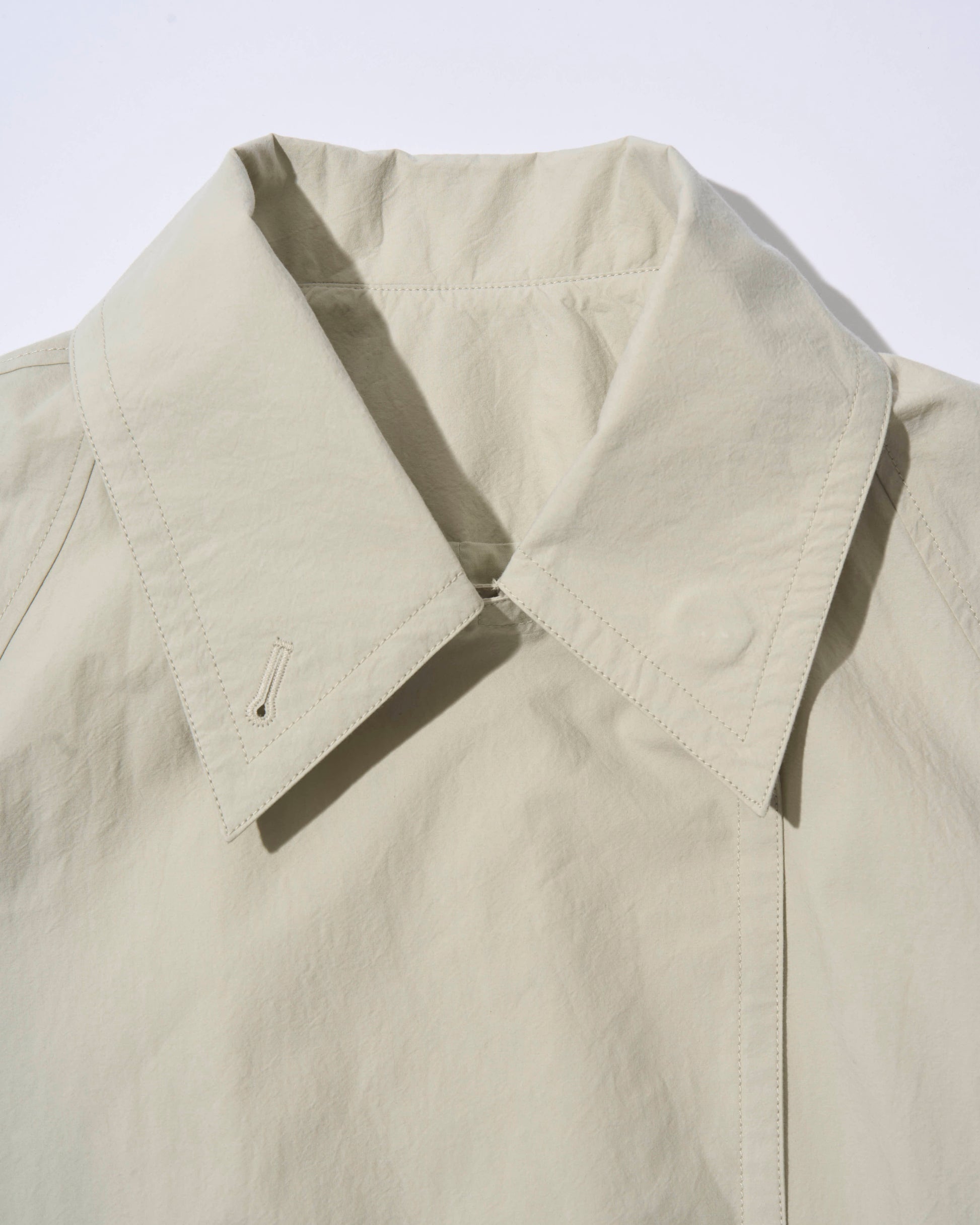 大きめのフラップポケットがアクセントになり、実用性とデザイン性を両立。袖口はシンプルにまとめ、全体をモダンで洗練された雰囲気に。アイボリーとカーキの2色展開で、ミニマルながらも存在感のある仕上がりです。羽織るだけでスタイリングが引き締まり、日常から特別なシーンまで幅広く活躍する一着です。