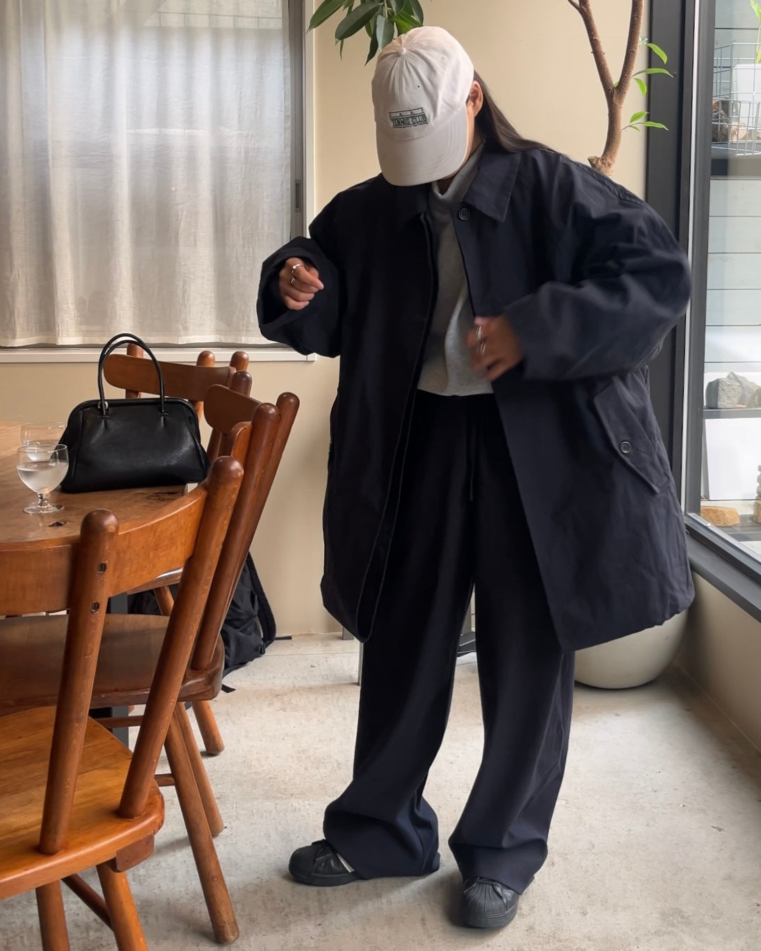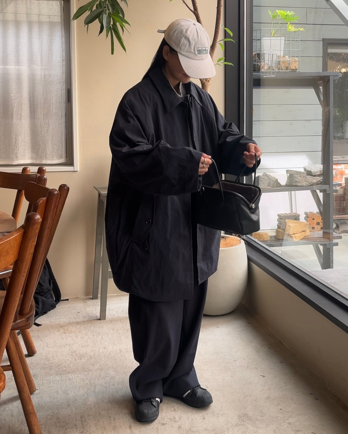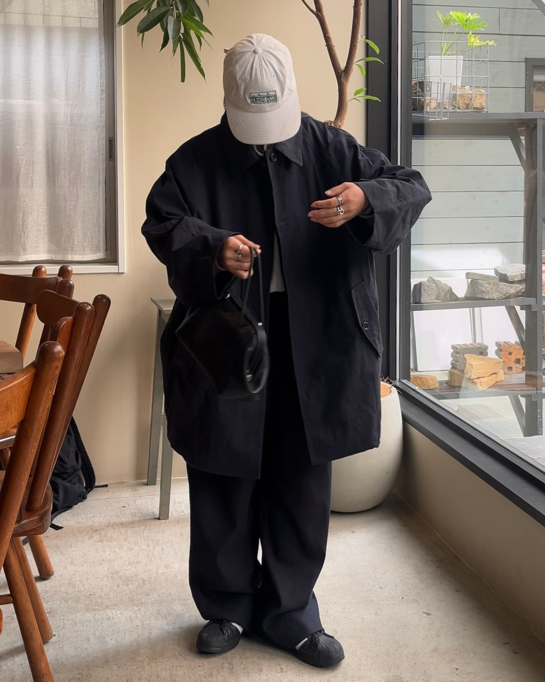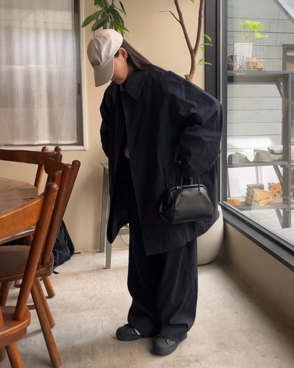 カラーはネイビーとアイボリーの2色展開。落ち着きのある色味とミニマルなデザインは、シーンを選ばず着用でき、都会的で上品な印象を与えます。シルエットの美しさと汎用性を兼ね備えた、長くワードローブに残る一着です。